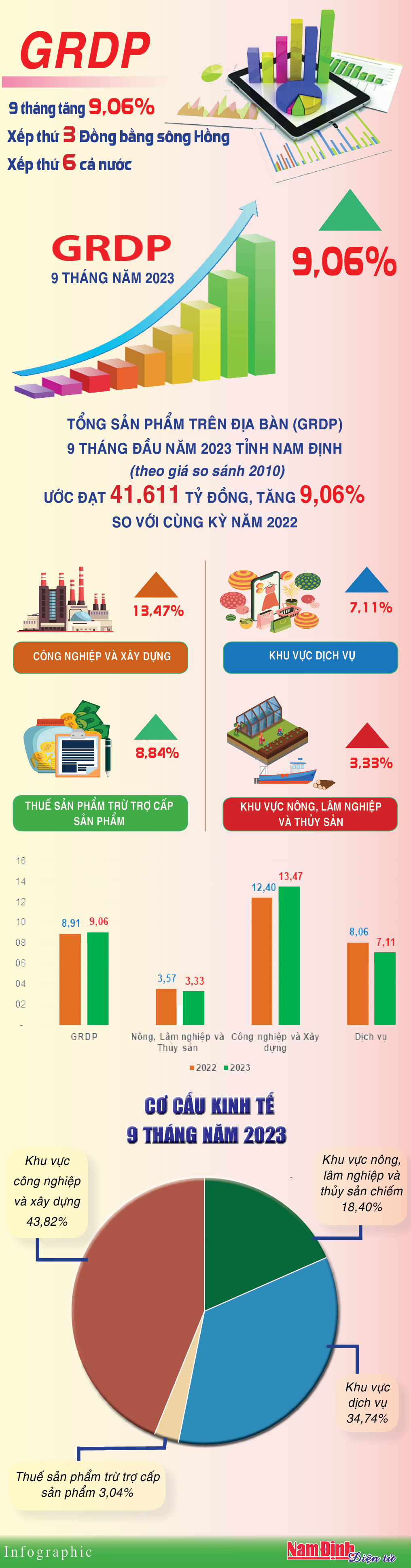 Nam Định: GRDP 9 tháng tăng 9,06%, xếp thứ 3 Đồng bằng sông Hồng và xếp thứ 6 cả nước