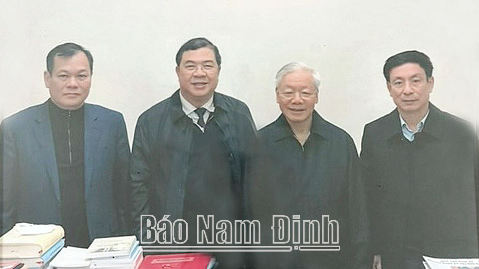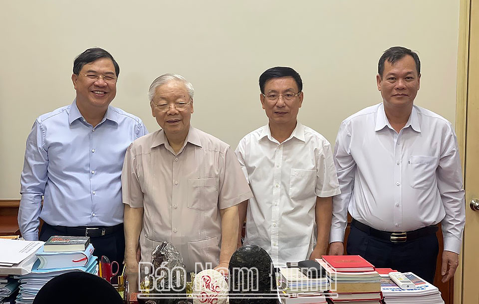 | Thường trực Tỉnh uỷ Nam Định nhiệm kỳ 2020 - 2025 báo cáo công việc của tỉnh với Tổng Bí thư Nguyễn Phú Trọng (năm 2022). |
