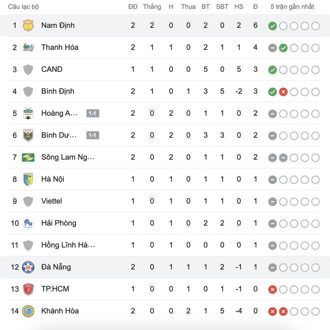| Bảng xếp hạng vòng 2 V.League 2023 tính đến sau trận đấu của CLB Nam Định. |
