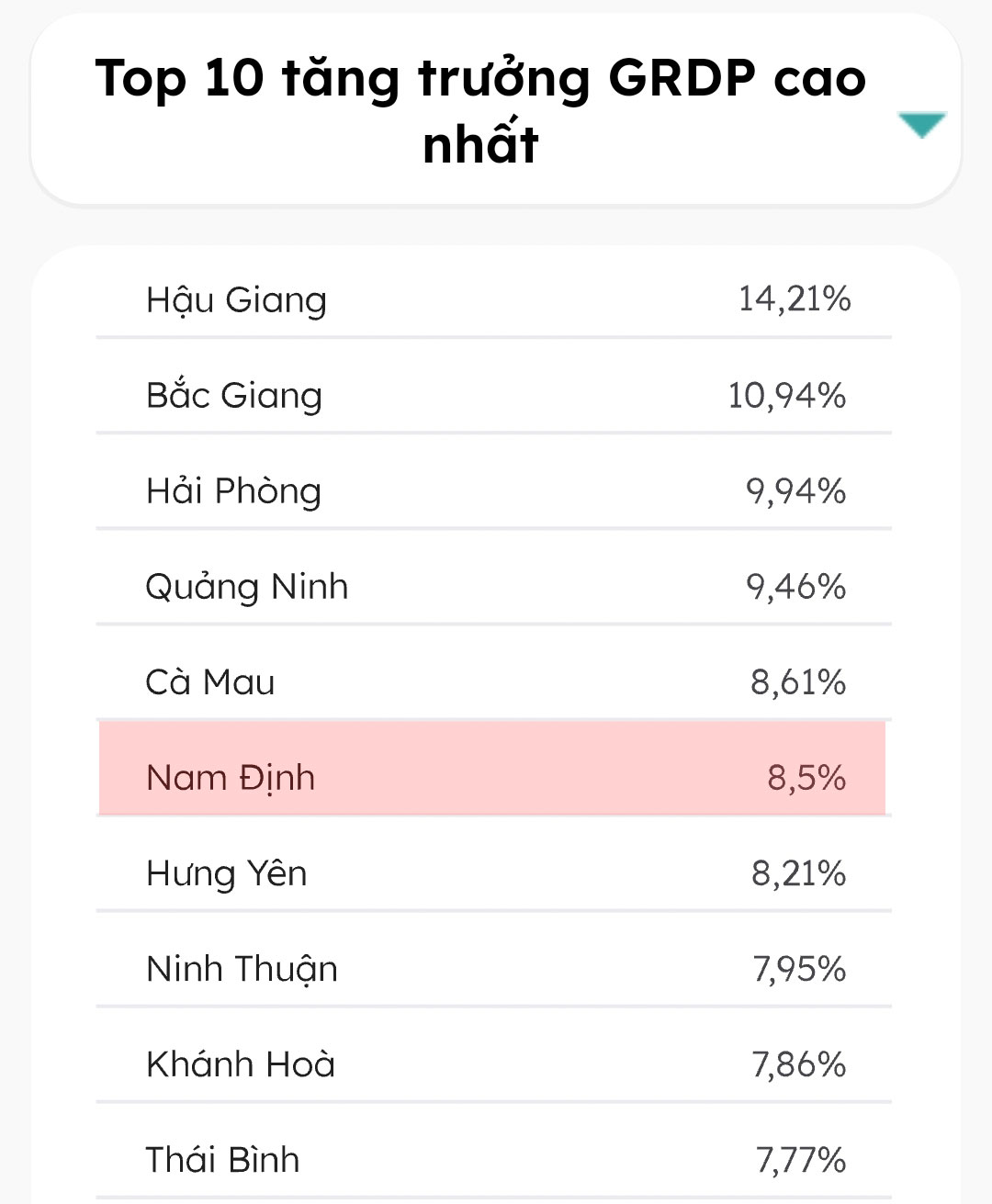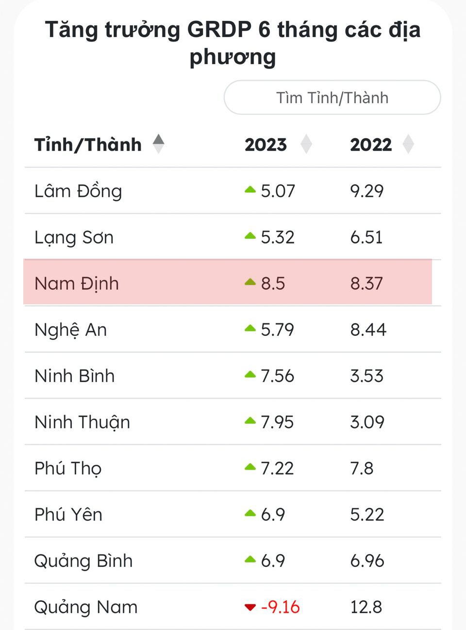 Nam Định nằm trong top 5 địa phương phía Bắc có tốc độ tăng trưởng trên 8%