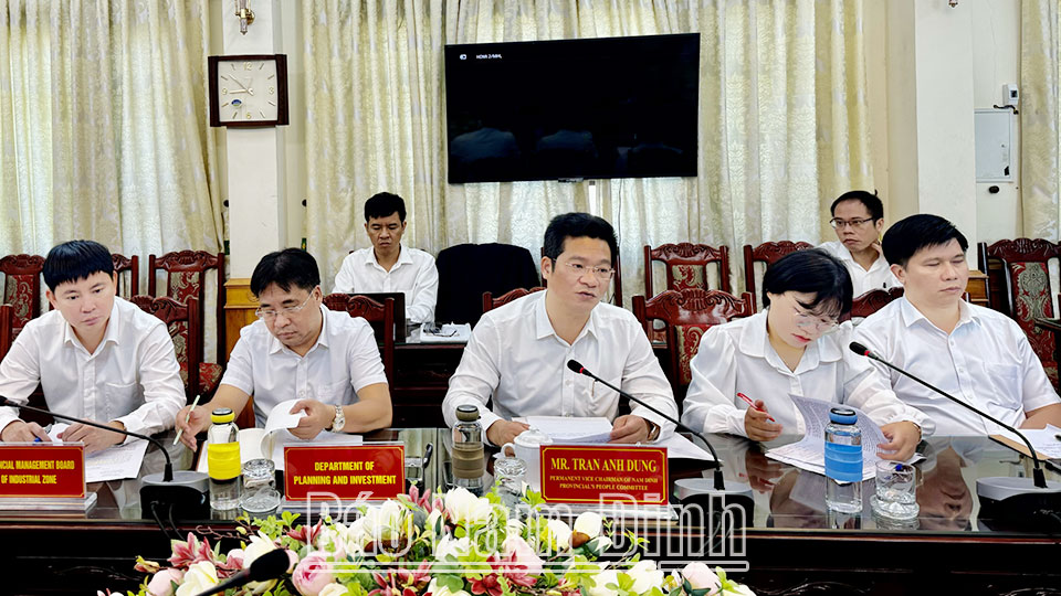 Đồng chí Phó Chủ tịch Thường trực UBND tỉnh nhấn mạnh các lợi thế thu hút đầu tư của Nam Định bao gồm: Vị trí chiến lược, giao thông thuận lợi; Quy hoạch phát triển đến năm 2030 và tầm nhìn đến năm 2050 đã được Thủ tướng Chính phủ phê duyệt, tạo không gian phát triển mới; nguồn nhân lực trẻ, dồi dào, có chất lượng cao, đáp ứng nhu cầu cả địa phương lẫn quốc gia; chi phí sản xuất cạnh tranh; thủ tục hành chính nhanh gọn; quỹ đất phát triển lớn với Khu kinh tế Ninh Cơ quy mô 13.950ha, 16 KCN quy mô 2.500 ha và 70 cụm công nghiệp quy mô 3.100ha. Thời gian tới, Nam Định sẽ tiếp tục huy động và sử dụng hiệu quả các nguồn lực để phát triển bền vững, tập trung đầu tư vào hạ tầng giao thông, công nghiệp công nghệ cao, nông nghiệp sạch và kinh tế biển. Ngoài ra, Nam Định sẽ đẩy mạnh xây dựng chính quyền điện tử và cải cách thủ tục hành chính để tạo thuận lợi nhất cho các nhà đầu tư. Đồng thời cam kết tạo điều kiện thuận lợi nhất cho các doanh nghiệp và sẽ trực tiếp hỗ trợ, giải quyết mọi khó khăn, xem thành công của nhà đầu tư là thành công chung của tỉnh Nam Định.