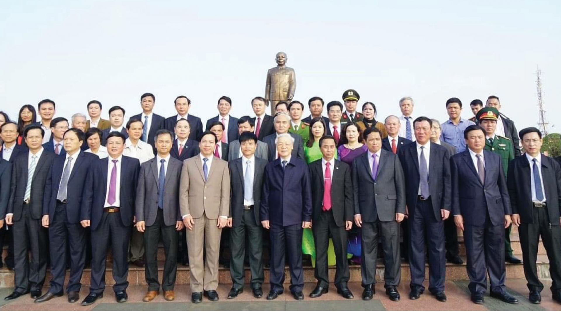 | Tổng Bí thư Nguyễn Phú Trọng và Đoàn công tác Trung ương dâng hương tại Tượng đài Tổng Bí thư Trường Chinh (Xuân Trường). |