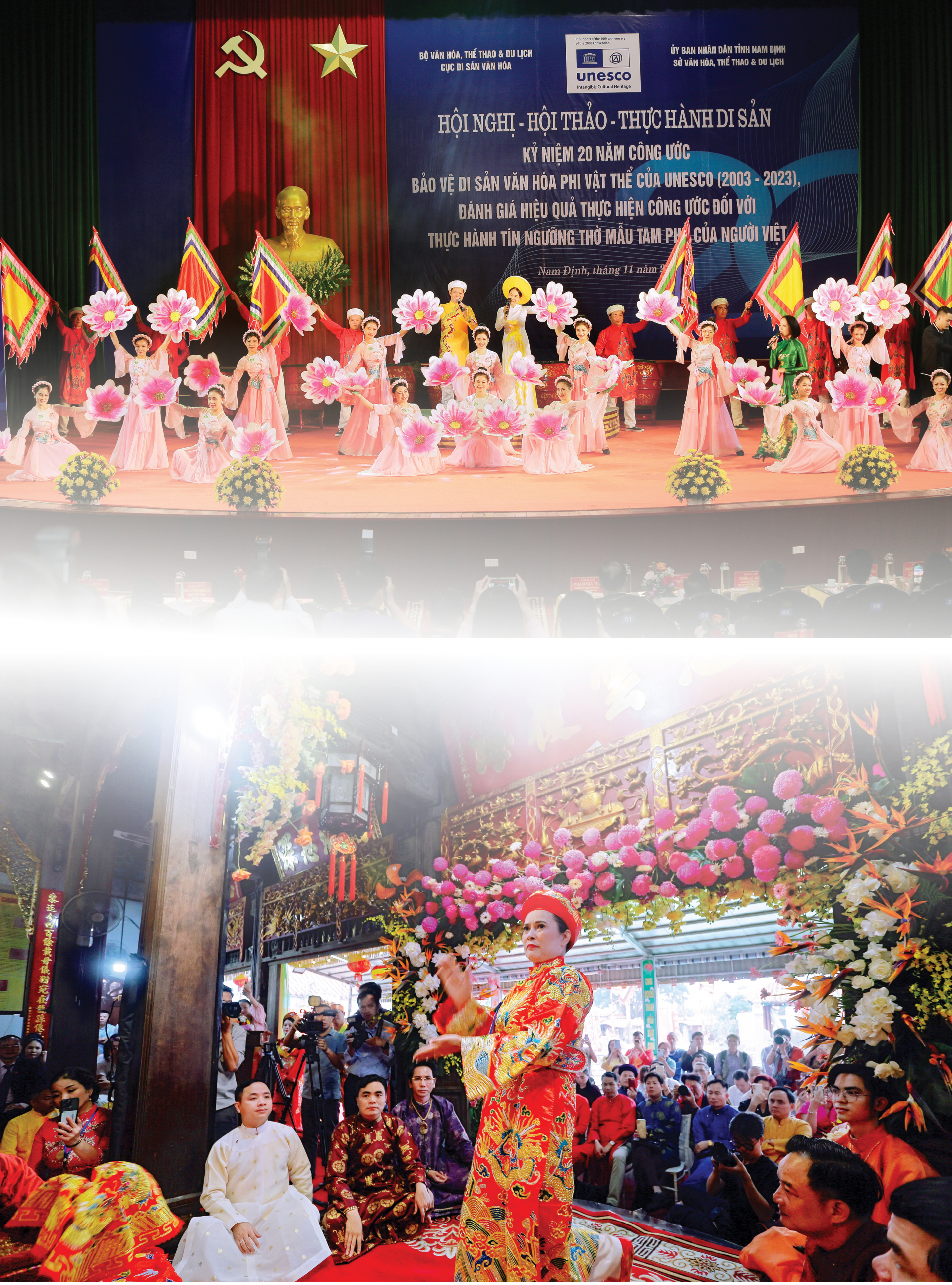 | Tiết mục hát Văn tại Hội thảo “Thực hành di sản Tín ngưỡng thờ Mẫu Tam phủ của người Việt” tại Nam Định tháng 11-2023 và Trình diễn nghệ thuật hầu đồng tại Khu di tích Phủ Dầy (Vụ Bản). |