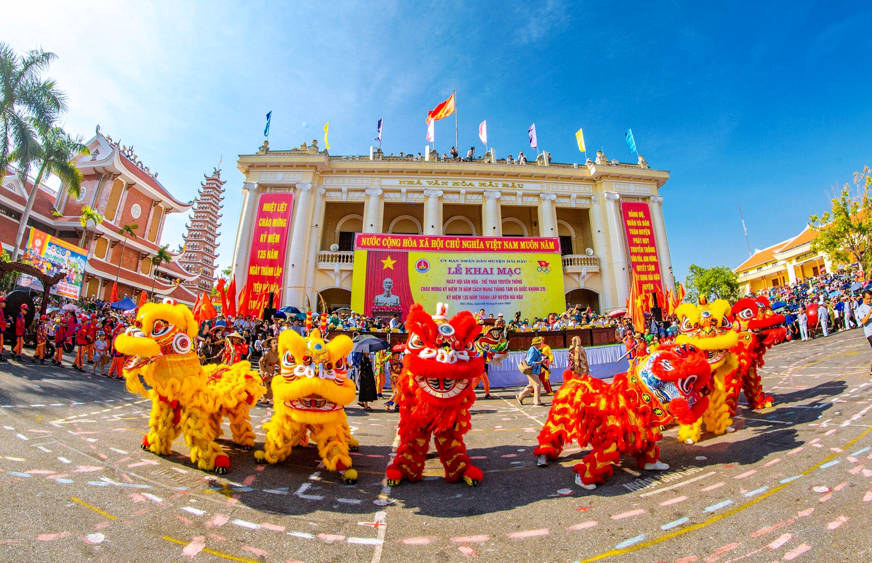 | Biểu diễn múa lân tại Ngày hội văn hóa - thể thao truyền thống huyện Hải Hậu. |