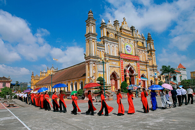 Không chỉ nổi tiếng vì có nhiều nhà thờ, nơi đây còn được biết đến là nơi có nhiều nhà thờ đẹp nhất Việt Nam. Những nhà thờ được xây dựng đầy tinh tế, tỉ mỉ, thể hiện được bàn tay nghệ thuật tài hoa của người dân. Hơn nữa còn mang sắc thái cổ kính lâu đời và có kiến trúc Gothic độc đáo theo kiểu phương Tây, đẹp lung linh với nhiều đường nét, hoa văn, màu sắc,…
