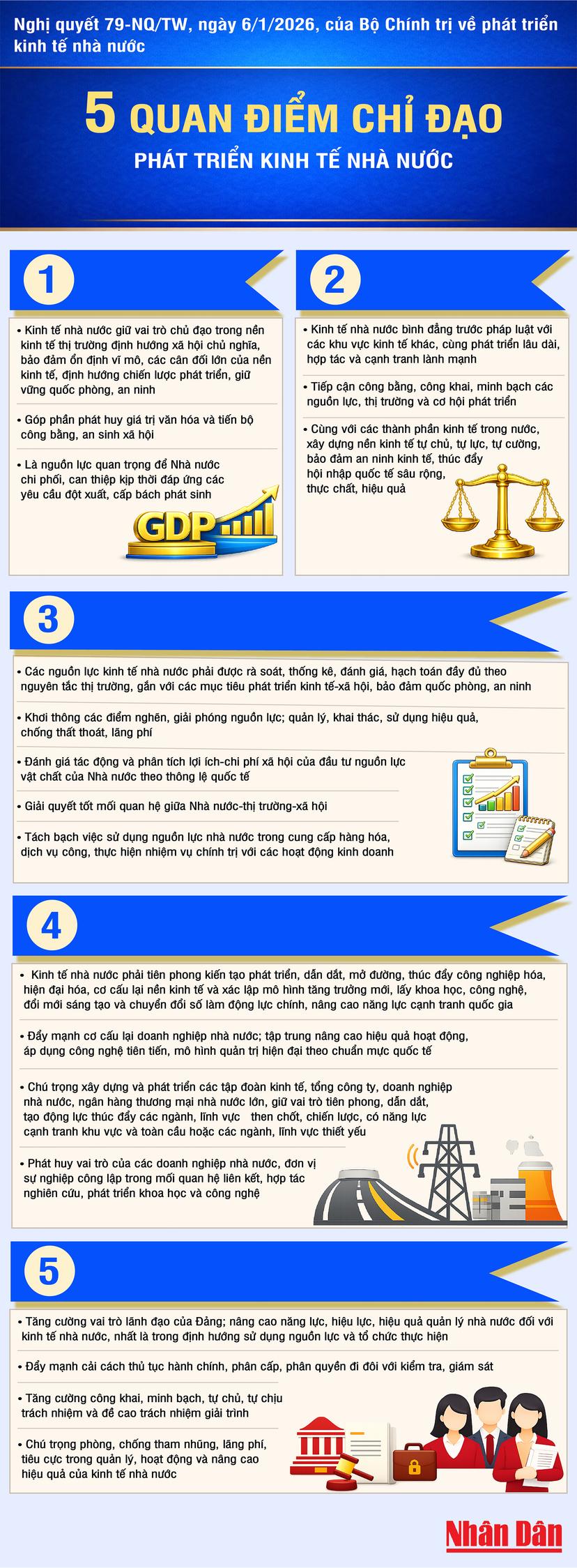Năm quan điểm chỉ đạo của Bộ Chính trị về phát triển kinh tế nhà nước