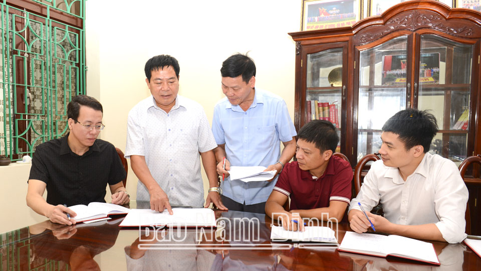 | Các đồng chí Thường trực Huyện ủy và Thường trực HĐND huyện Nam Trực trao đổi những vấn đề cử tri quan tâm. |