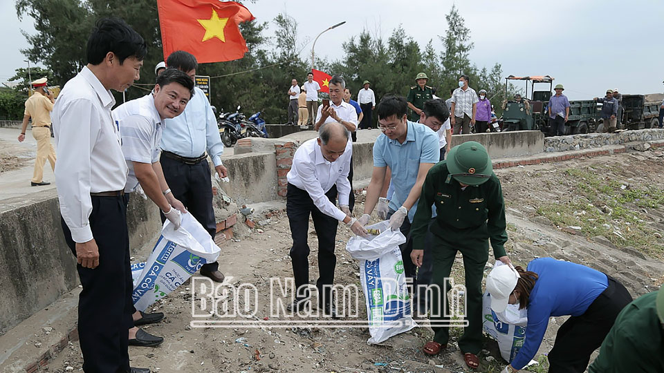 Sau hội nghị, các đại biểu và bà con giáo dân đã ra quân vệ sinh môi trường, thu gom rác thải tại bãi biển xã Hải Đông./.