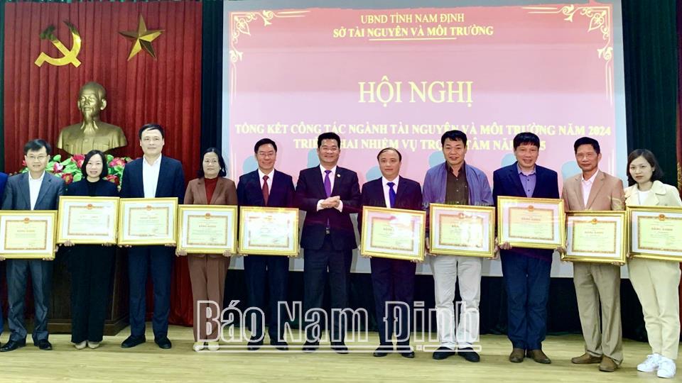 Năm 2024, ngành TN và MT đạt được nhiều kết quả quan trọng, góp phần thúc đẩy phát triển kinh tế - xã hội và bảo vệ môi trường. Dưới sự chỉ đạo của Tỉnh ủy, UBND tỉnh và Bộ TN và MT, ngành đã kịp thời tham mưu ban hành 17 nghị quyết, 15 quyết định và 8 kế hoạch, tạo hành lang pháp lý hiệu quả trong quản lý tài nguyên, đất đai và môi trường. Trong lĩnh vực quản lý đất đai, đã hoàn thành kiểm kê đất đai, lập bản đồ hiện trạng sử dụng đất; thẩm định và hoàn thiện hồ sơ thu hồi đất cho các dự án trọng điểm như tuyến đường bộ Nam Định - Lạc Quần - Đường bộ ven biển, đường cao tốc Ninh Bình - Hải Phòng. Công tác giao đất, cho thuê đất, đấu giá quyền sử dụng đất đạt hiệu quả cao, tạo điều kiện thuận lợi cho thu hút đầu tư và phát triển đô thị. Về bảo vệ môi trường, Nam Định nằm trong nhóm 11/63 tỉnh, thành phố đạt kết quả cao về thu gom, xử lý chất thải rắn và giám sát môi trường. Hoạt động quản lý khai thác tài nguyên nước và khoáng sản được thực hiện chặt chẽ, góp phần phát triển bền vững. Ngành tiếp tục đẩy mạnh cải cách hành chính, ứng dụng công nghệ thông tin trong giải quyết thủ tục, nâng cao chất lượng phục vụ người dân và doanh nghiệp.