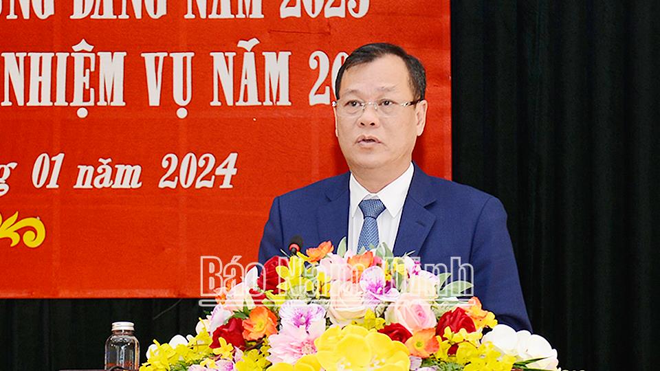 Phát biểu chỉ đạo tại hội nghị, đồng chí Phó Bí thư Thường trực Tỉnh ủy Lê Quốc Chỉnh ghi nhận, biểu dương những kết quả mà Đảng bộ Khối các Cơ quan và Doanh nghiệp tỉnh đã đạt được trong năm 2023. Đồng chí yêu cầu năm 2024 Ban Thường vụ Đảng ủy Khối cần tiếp tục chỉ đạo các cấp ủy trực thuộc chú trọng công tác chính trị tư tưởng cho cán bộ, đảng viên, công chức, viên chức và người lao động. Các cấp ủy, tổ chức đảng cần thường xuyên đánh giá sâu tình hình tư tưởng và sát với từng đối tượng để có phương pháp giáo dục, rèn luyện, quản lý phù hợp với đặc thù của từng cơ quan, đơn vị; đặc biệt là đấu tranh, ngăn chặn, đẩy lùi suy thoái, “tự diễn biến”, “tự chuyển hóa” trong cán bộ, đảng viên. Tập trung lãnh đạo, chỉ đạo các tổ chức đảng trong Đảng bộ Khối chủ động xây dựng kế hoạch, chương trình hành động thực hiện các chủ trương, nghị quyết của Đảng phù hợp với đặc điểm, tình hình của từng cơ quan, đơn vị; đồng thời, bám sát yêu cầu, nhiệm vụ chính trị của tỉnh, làm tốt công tác tham mưu cụ thể hóa các chủ trương của Đảng, chính sách, pháp luật của Nhà nước, đẩy mạnh phát triển kinh tế - xã hội; cải cách hành chính, xúc tiến, thu hút đầu tư, xây dựng chính quyền điện tử; phòng chống tham nhũng, lãng phí. Đảng bộ Khối cần đi đầu trong việc thực hiện Nghị quyết Trung ương 4 (khóa XIII) về tăng cường xây dựng, chỉnh đốn Đảng và hệ thống chính trị. Chú trọng nâng cao chất lượng sinh hoạt Đảng theo hướng sát thực, phù hợp với từng loại hình tổ chức đảng. Tiến hành đánh giá việc thực hiện mô hình “Chi bộ bốn tốt”, “Đảng bộ cơ sở bốn tốt” để nhân rộng mô hình trong toàn Đảng bộ. Quan tâm hơn nữa đối với công tác phát triển đảng, nâng cao chất lượng đội ngũ đảng viên, đáp ứng yêu cầu nhiệm vụ...