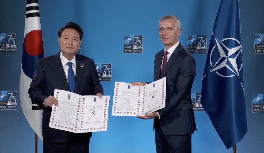 Phát biểu trong cuộc gặp với Tổng thư ký NATO Jens Stoltenberg, Tổng thống Hàn Quốc Yoon Suk Yeol xác nhận hai bên đã ký kết thỏa thuận về quy trình công nhận lẫn nhau đối với chứng nhận đủ điều kiện bay quân sự như một phần của việc công bố khả năng tương tác giữa hai bên.