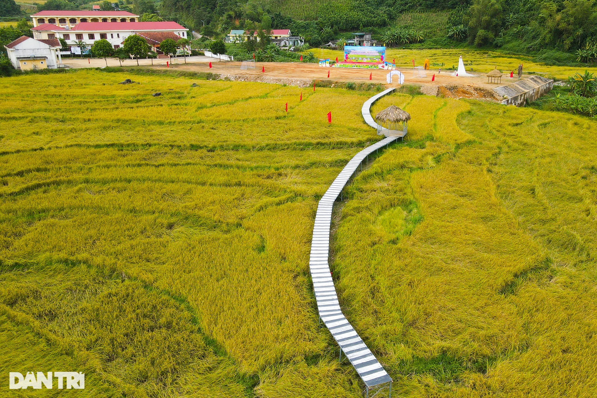 Bên cạnh đó, lễ hội còn diễn ra các hoạt động thể thao như: Đẩy gậy bắn nỏ, giải chạy việt dã chủ đề "Băng qua mùa vàng" tại khu vực ruộng bậc thang thôn Khe Lục, đặc biệt là thi đấu bóng đá nữ Sán Chỉ giữa các thôn (Ảnh: An Nhiên).