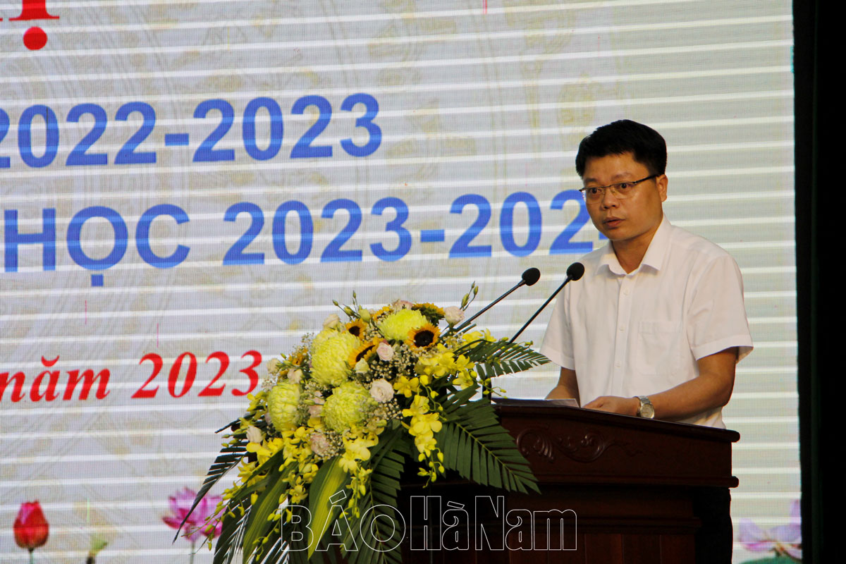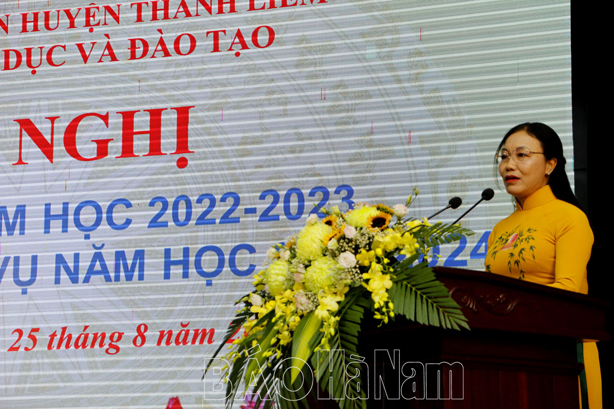 Lãnh đạo Phòng GD&ĐT huyện Thanh Liêm báo cáo kết quả năm học 2022- 2023 và triển khai nhiệm vụ năm học 2023- 2024.