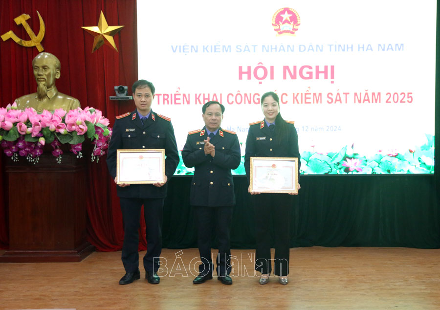 Tại hội nghị, Viện KSND tỉnh đã trao Cờ đơn vị xuất sắc phong trào thi đua năm 2024 của Viện KSND tối cao cho 2 tập thể; 2 tập thể được Viện KSND tối cao tặng danh hiệu Tập thể Lao động xuất sắc; 3 tập thể, cá nhân được Viện Trưởng Viện KSND tối cao tặng Bằng khen vì có thành tích xuất sắc trong chuyển đổi số; 6 cá nhân được công nhận Chiến sĩ thi đua cơ sở năm 2024./.