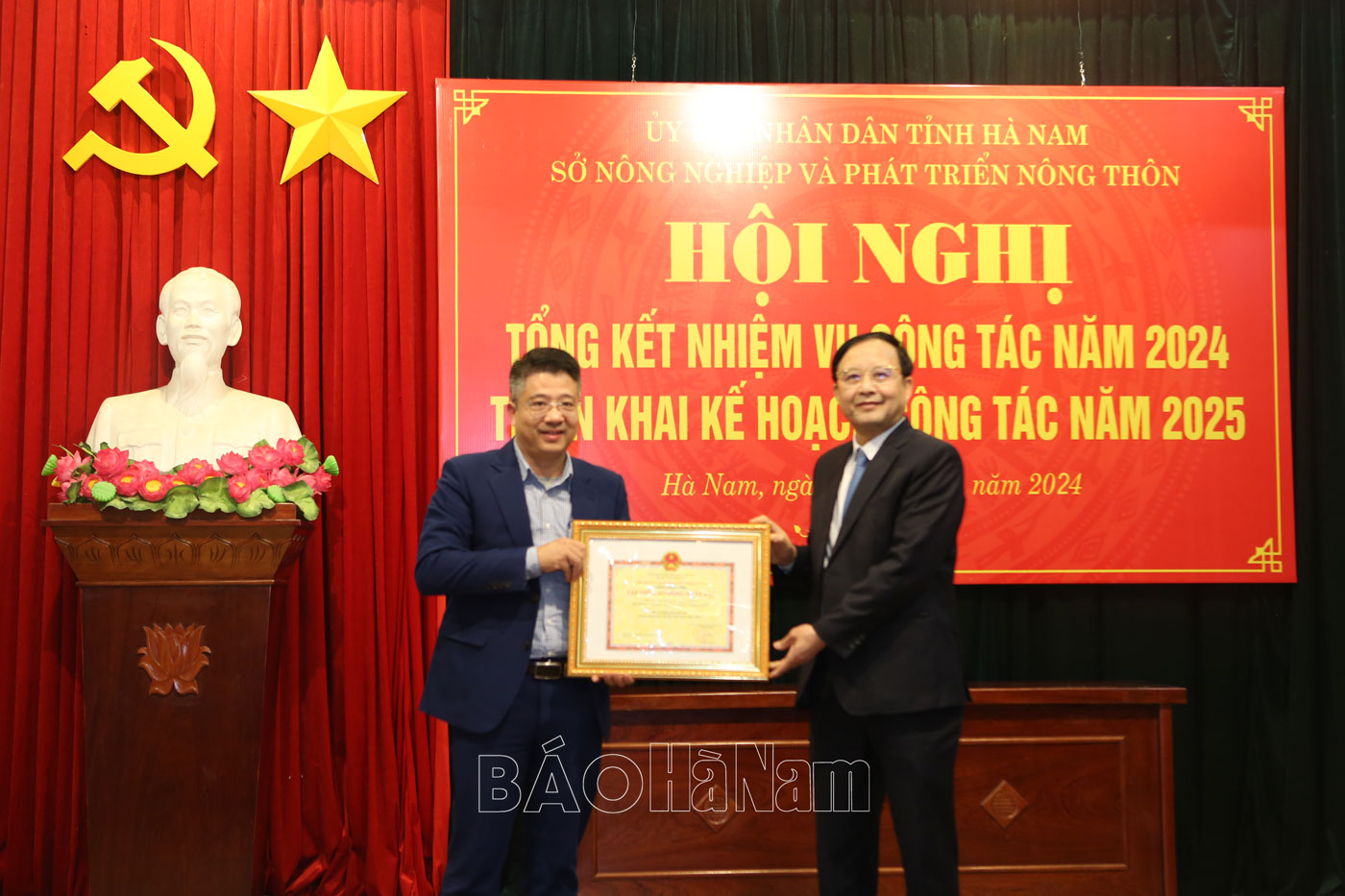 Tại hội nghị, các tập thể có thành tích xuất sắc năm 2024 đã được UBND tỉnh tặng danh hiệu Tập thể lao động xuất sắc và Giám đốc Sở NN & PTNT tặng Giấy khen.