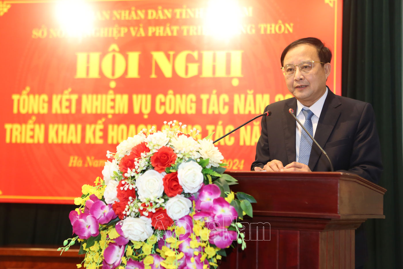 Phát biểu chỉ đạo tại hội nghị, đồng chí Phó chủ tịch UBND tỉnh Nguyễn Đức Vượng đánh giá cao kết quả ngành NN & PTNT đã đạt được trong năm qua. Tuy nhiên, để hoàn thành vượt mức các chỉ tiêu kế hoạch năm 2025, ngành cần tiếp tục thực hiện hiệu quả chương trình tái cơ cấu lại ngành nông nghiệp: Đẩy mạnh ứng dụng khoa học – công nghệ và chuyển đổi số trong sản xuất nông nghiệp; đưa cơ giới hóa vào các khâu sản xuất; phối hợp với ngành Công thương thực hiện công tác xúc tiến thương mại cho nông sản hàng hóa; kịp thời phát hiện và xử lý các vi phạm về lĩnh vực đê điều, thủy lợi; quan tâm công tác phòng chống cháy rừng; chú trọng chương trình xây dựng NTM nâng cao, kiểu mẫu; hỗ trợ chủ thể sản xuất sản phẩm áp dụng khoa học kỹ thuật trong sản xuất các sản phẩm OCOP…