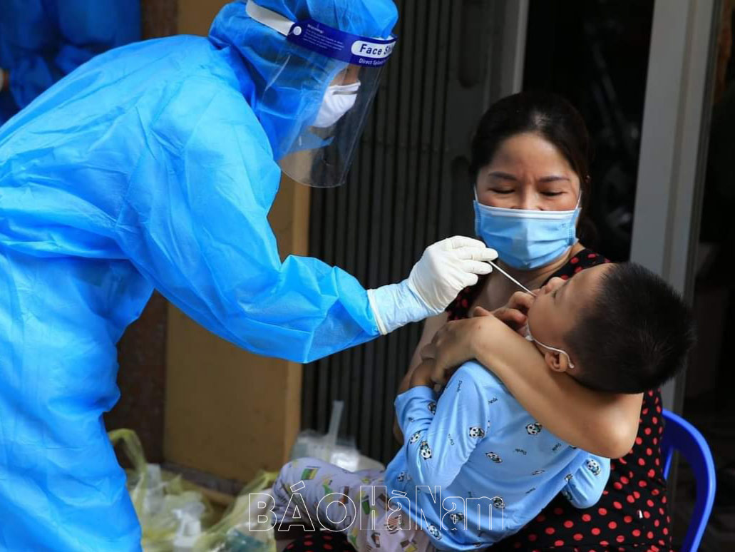 Lấy mẫu xét nghiệm sàng lọc SARS-CoV-2 cho người dân thành phố Phủ Lý