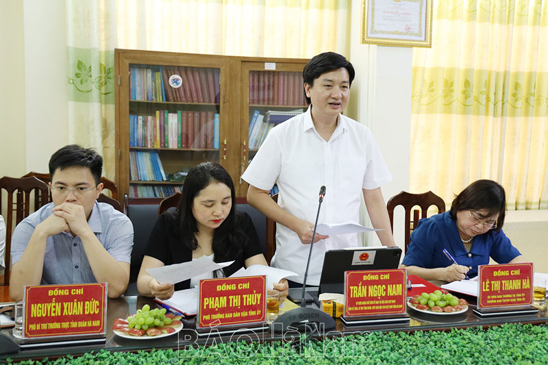 Phát biểu chỉ đạo tại hội nghị, đồng chí Bí thư Ban Chấp hành Trung ương Đoàn Ngô Văn Cương biểu dương, đánh giá cao Tỉnh đoàn, Hội LHTN tỉnh mạnh dạn đăng cai đại hội điểm Cụm Đồng bằng sông Hồng và Cụm Trung du Bắc Bộ; đồng ý cho Hội LHTN tỉnh Hà Nam giữ nguyên khung chương trình đại hội. Đối với phiên trọng thể, tập trung tối đa 2 tham luận, chú ý chọn người tham luận là cán bộ, hội viên tiêu biểu, quan tâm đầu tư về nội dung, đổi mới cách trình bày.
