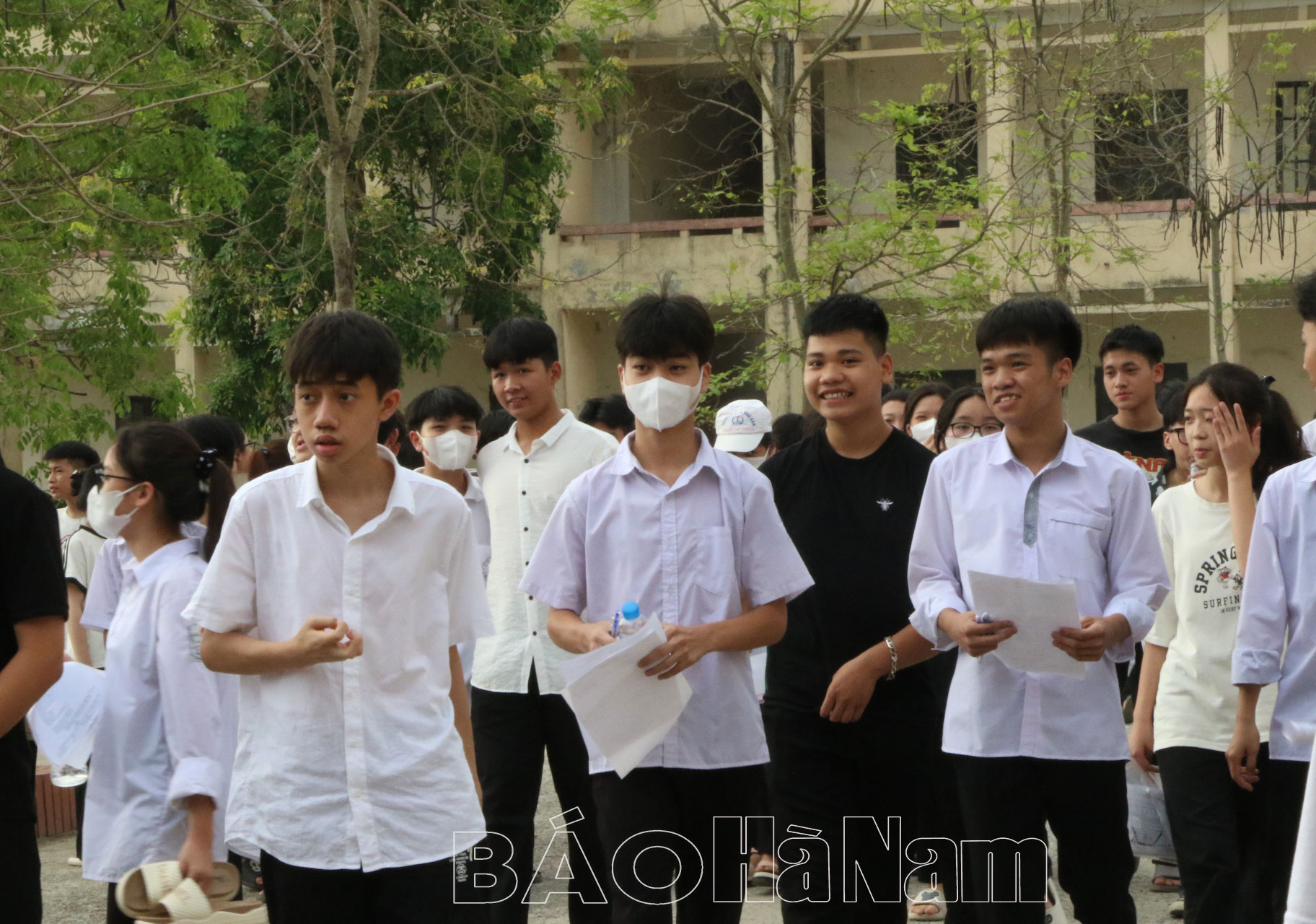 Sau hai tiếng làm bài, 16 giờ 30 phút các thí sinh đã hoàn thành buổi thi đầu tiên, nhiều học sinh phấn khởi vì làm được bài. Em Nguyễn Tiến Hảo (điểm thi Trường THPT C Phủ Lý), cho biết: Đề thi có độ dài vừa phải, kiến thức nằm trong phạm vi ôn tập, em chắc sẽ đạt được khoảng 7-8 điểm. Hy vọng môn Toán và Tiếng Anh ngày mai cũng không làm khó chúng em quá!