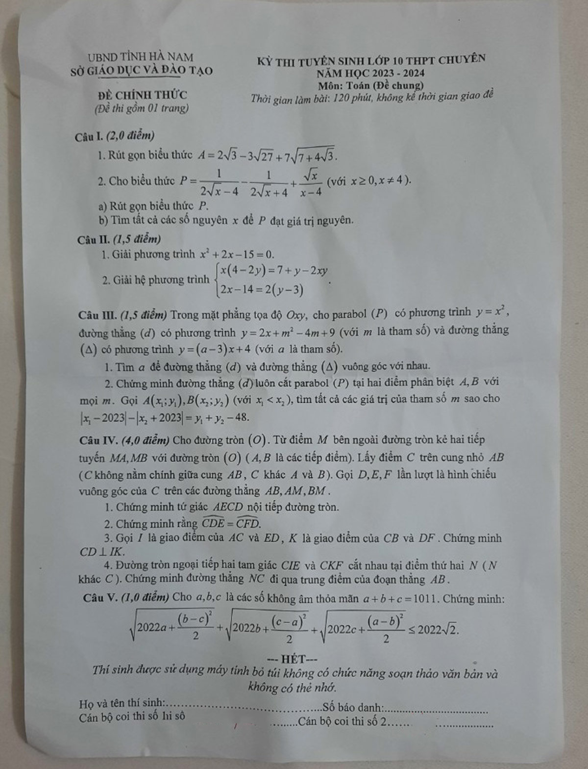 Đề thi có 4 câu gồm 1 câu Hình học và 3 câu Đại số. Tất cả đều thuộc nội dung chương trình đã học và ôn tập. Nhiều giáo viên dạy môn Toán ở các trường THCS nhận xét, đề thi không quá khó với học sinh thi tuyển vào trường chuyên. Với học sinh đăng ký thi các lớp chuyên khối tự nhiên, các em có thể dễ kiếm điểm 8 trở lên. Còn lại, với học sinh đăng ký dự thi vào các lớp chuyên khối xã hội, việc kiếm điểm 7 không khó, nhưng để đạt điểm 8 rất khó!