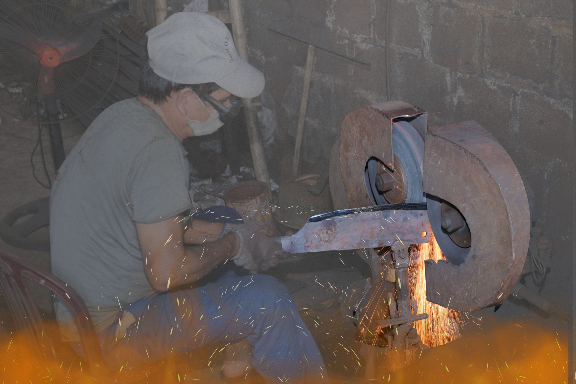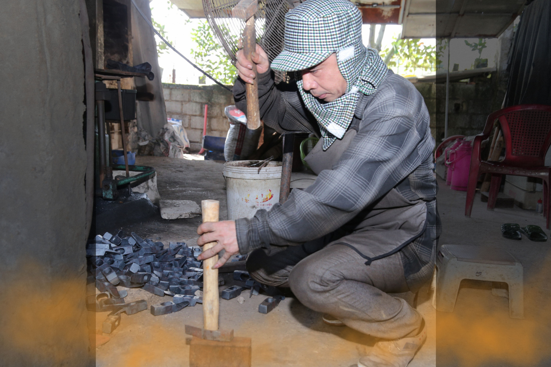 | Anh Bùi Đình Nguyên nhóm lửa bếp bắt đầu công việc thợ rèn. |