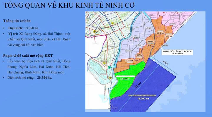 Nếu Nghị quyết 16 là bản vẽ tổng thể, thì Khu kinh tế (KKT) Ninh Cơ chính là “hạt nhân” định hình và thúc đẩy sự phát triển của toàn bộ không gian kinh tế biển. Với quy mô lên tới 13.950 ha trải dài qua các xã Rạng Đông, Hải Thịnh, Quỹ Nhất, Hải Xuân... ngoài ra còn dự kiến còn mở rộng ra nhiều xã khác, Ninh Cơ sẽ là một siêu khu kinh tế biển tổng hợp, đa ngành. Sự kiện Thủ tướng Chính phủ phê duyệt nhiệm vụ Quy hoạch chung KKT Ninh Cơ vào tháng 12/2025 đã chính thức thổi bùng lên ngọn lửa quyết tâm tại đại công trường này.