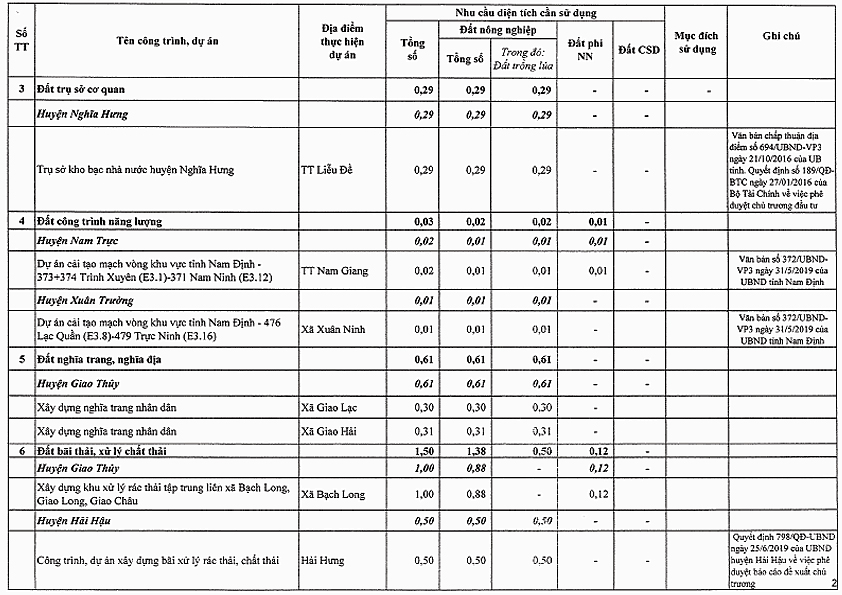 Căn cứ Nghị quyết số 135/NQ-CP ngày 26 tháng 12 năm 2017 của Chính phủ về điều chỉnh Quy hoạch sử dụng đất đến năm 2020 và kế hoạch sử dụng đất kỳ cuối giai đoạn 2016-2020 tỉnh Nam Định;