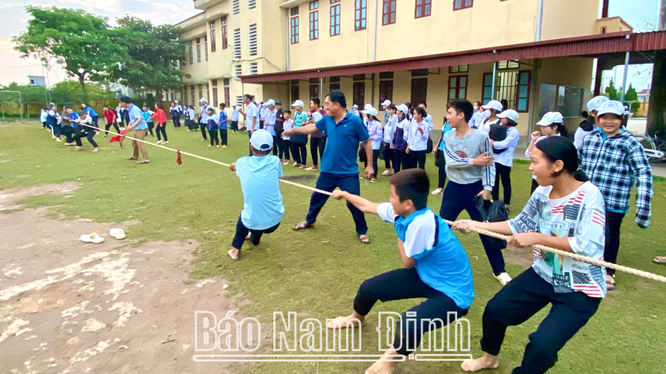 | Trường THCS thị trấn Rạng Đông tổ chức thi đấu kéo co cho học sinh nhân kỷ niệm Ngày Nhà giáo Việt Nam (20-11). |