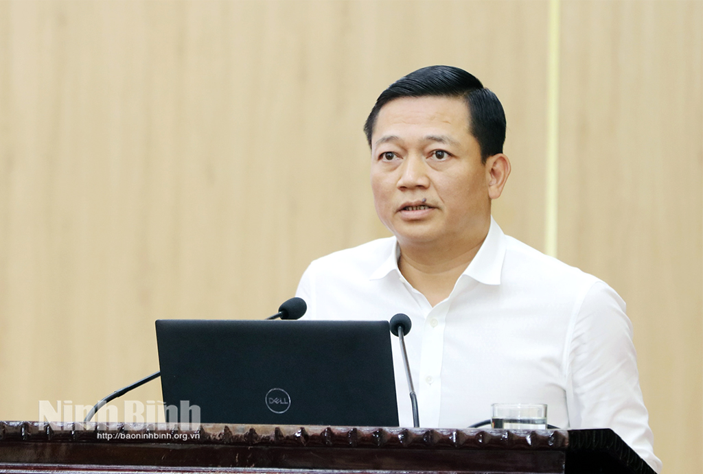 Đồng chí Nguyễn Cao Sơn, Tỉnh ủy viên, Phó Chủ tịch UBND tỉnh giới thiệu, quán triệt Nghị quyết số 11-NQ/TU, ngày 30/1/2026 của Ban Thường vụ Tỉnh ủy về xây dựng và phát triển kết cấu hạ tầng trên địa bàn tỉnh Ninh Bình theo hướng đồng bộ, hiện đại.