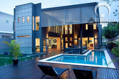 Không thể bỏ qua vai trò của thép, đặc biệt là kính trong việc sử dụng vật liệu. Kính ở cửa sổ, cửa chính, vách kính lớn cho cái nhìn bao quát và tầm view đẹp mắt – tất cả tạo ra tương phản giữa đặc và rỗng, cảm nhận sự gọn gang, mạnh mẽ. Sử dụng đa số những vật liệu hiện đại, kết cấu mái bằng. Phong cách hiện đại là giải pháp cho nhà hẹp, giúp cảm giác rộng và thoáng hơn. Đây vẫn là xu hướng được ưa chuộng, đặc biệt đối với giới trẻ. Khi thiết kế theo kiểu này, bạn phải định hình xem mình sẽ sử dụng bao nhiêu chi tiết? Điều đó còn lệ thuộc vào diện tích ngôi nhà. Nhà càng bé, thì càng phải chắt lọc và tối giản về chi tiết.