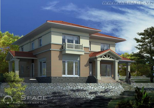 Màu đỏ nồng ấm của mái dốc, màu ghi vững chắc của đá ốp chân tường và hình khối khỏe khoắn nói lên một phần cá tính của gia chủ: coi trọng sự quy tụ của gia đình, phóng khoáng nhưng cũng rất giản dị.