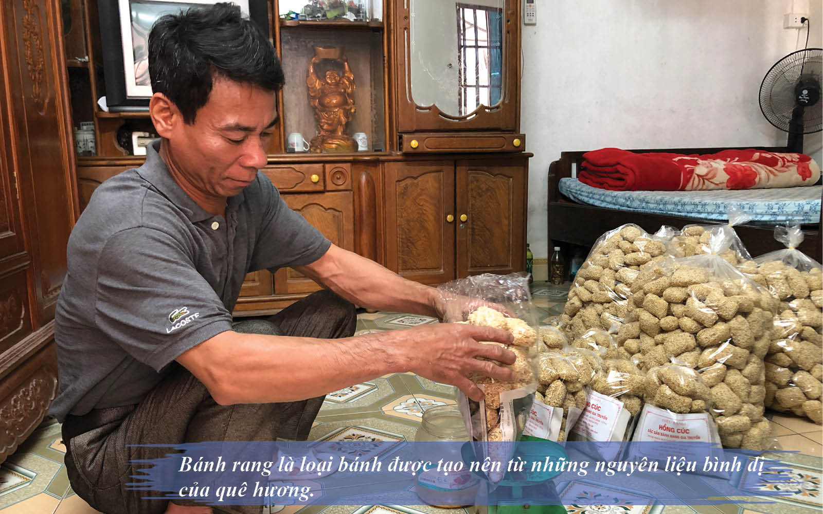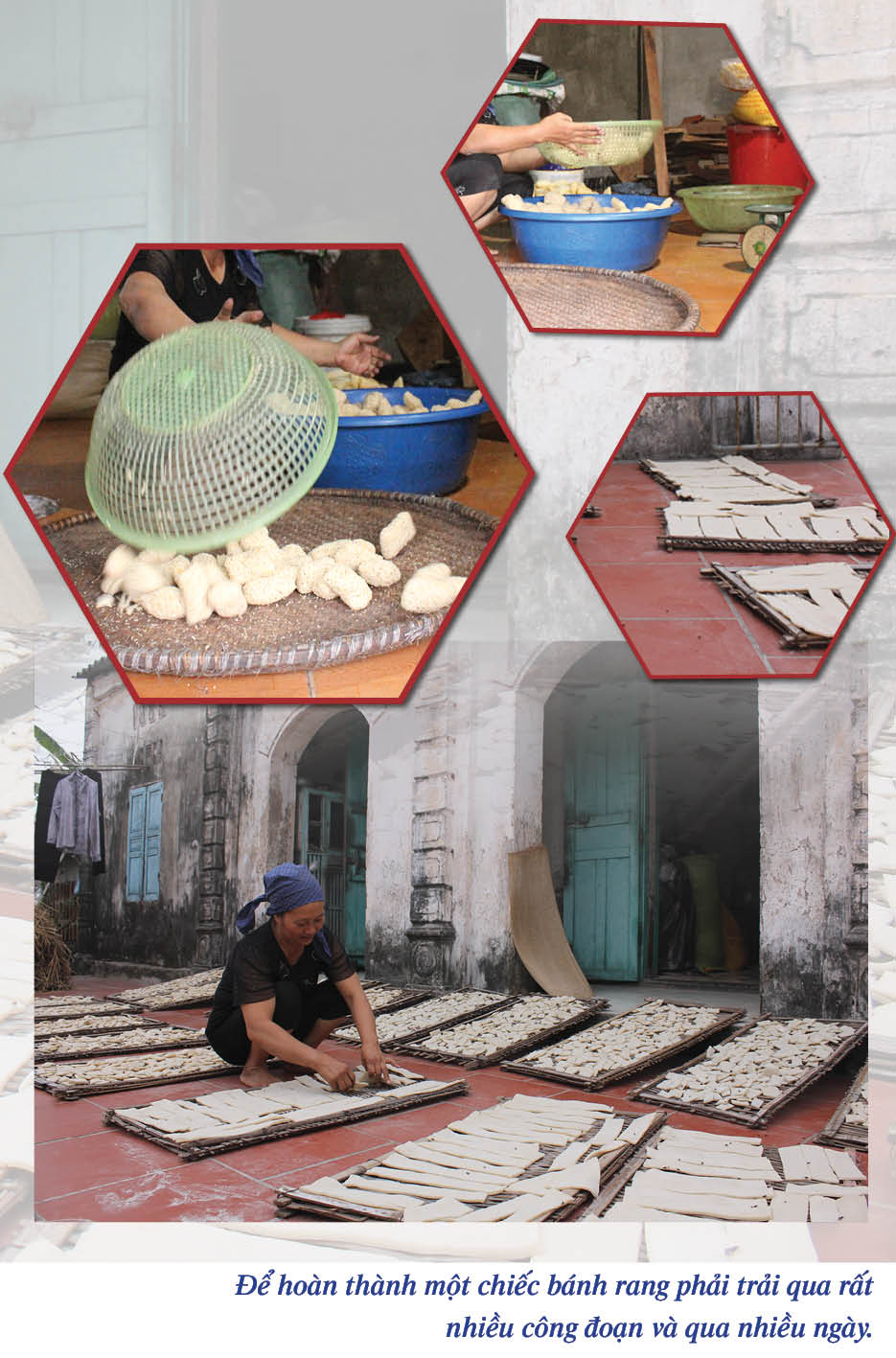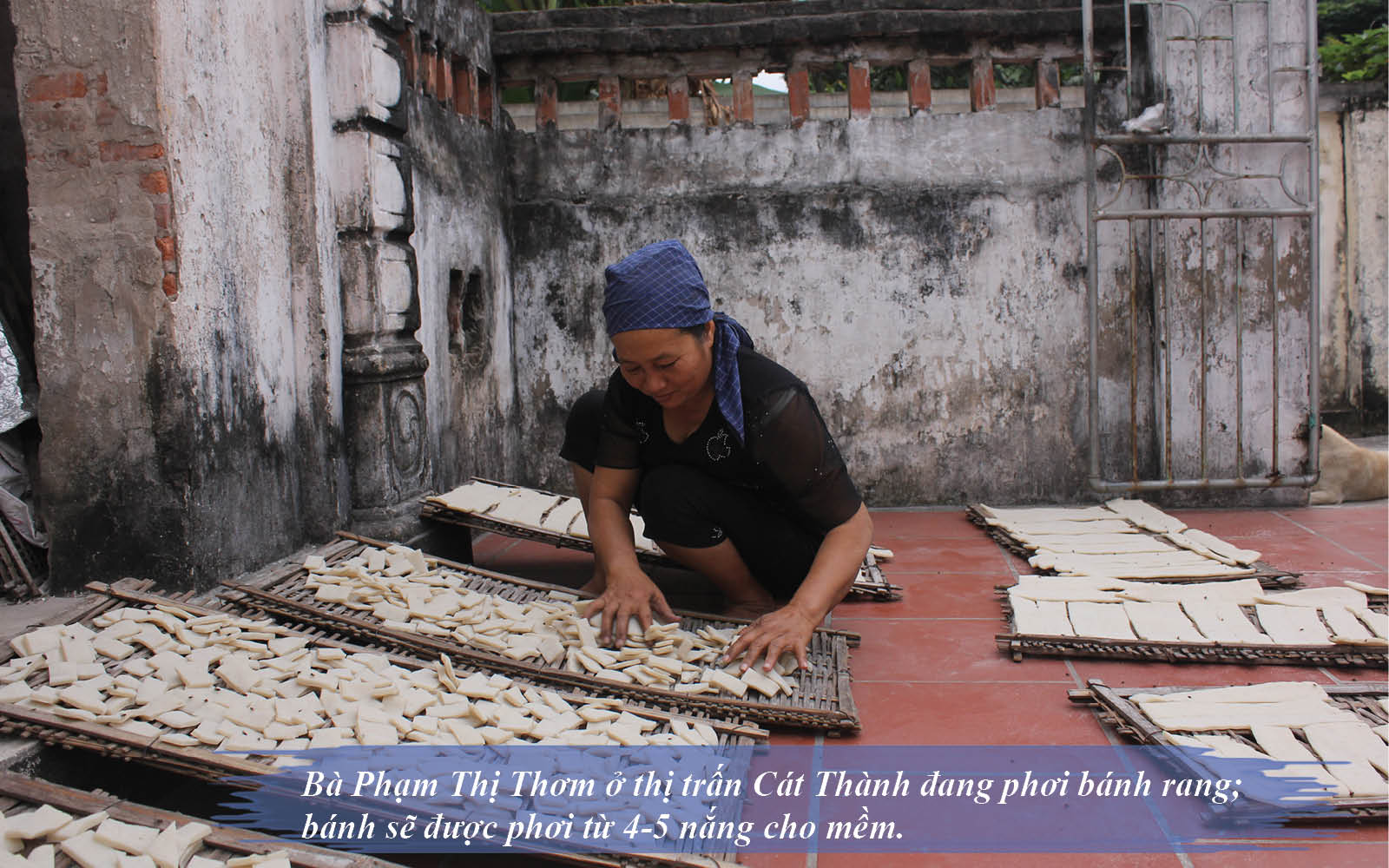 Bình thường, một ngày chỉ có thể phơi vào 2 thời điểm là nắng buổi sớm và nắng lúc xế chiều vì lúc này nắng nhẹ, không gay gắt, giúp cho bánh ngon hơn. Biết bao công phu, tỉ mỉ của người làm bánh nhưng một túi bánh rang 500gr có giá thành khá rẻ, khoảng 30-40 nghìn đồng.