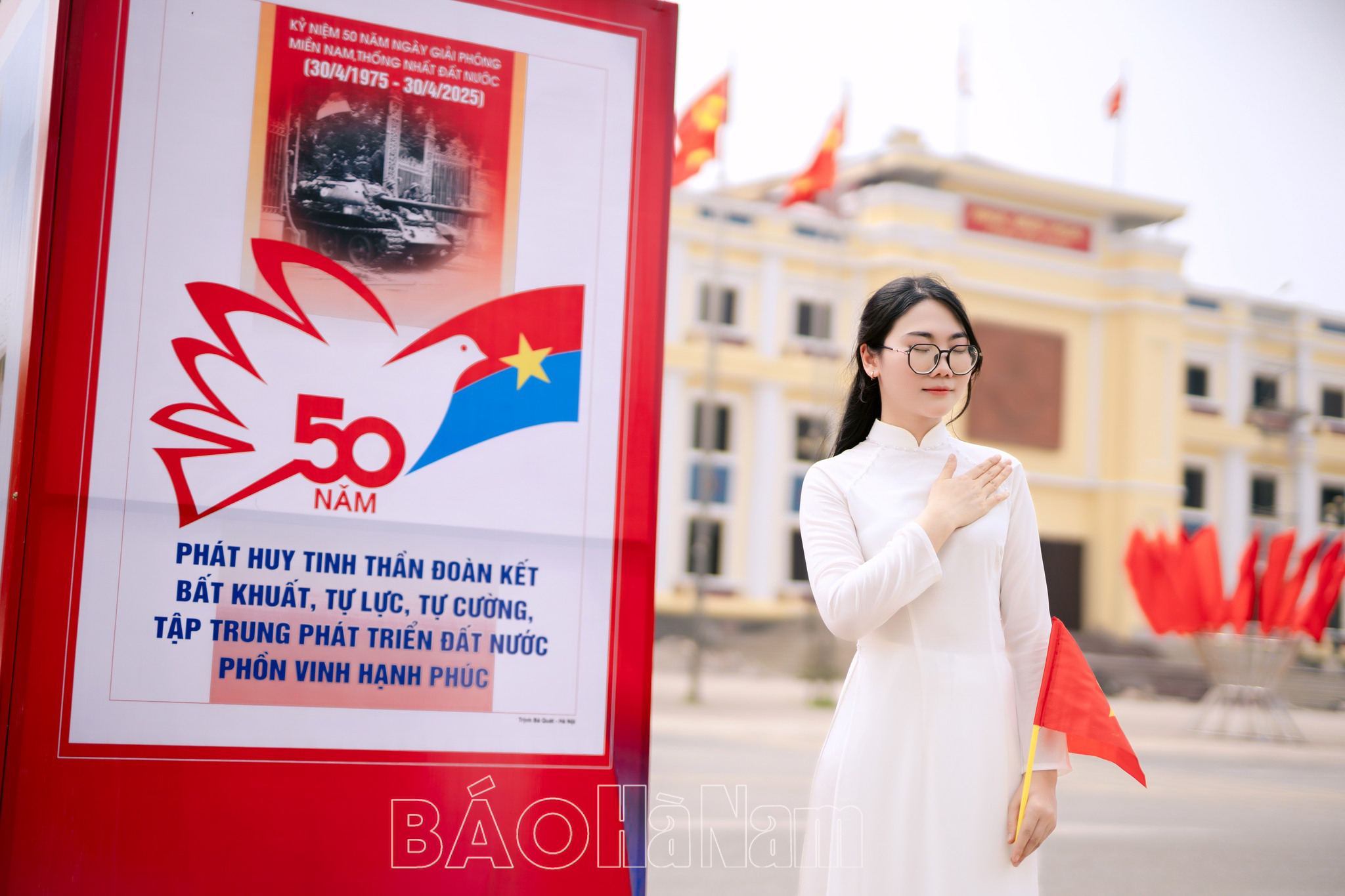 Người dân Hà Nam nô nức bắt "trend" check-in cùng cờ đỏ sao vàng dịp 30/4