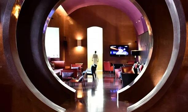 Khu vực quán bar tại khách sạn Roseate House, Delhi. Ảnh: Bloomberg