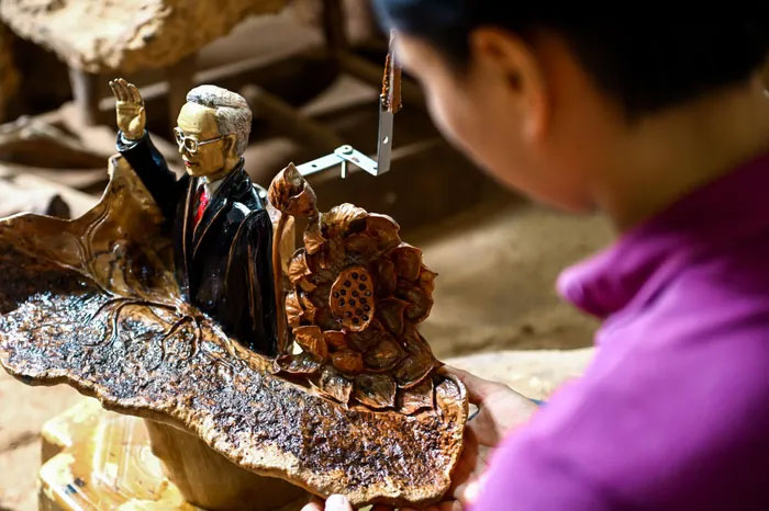 Ngay khi nghe tin Tổng Bí thư Nguyễn Phú Trọng từ trần, anh Lã Thành Luân (trú tại huyện Ý Yên, Nam Định) đã thức trắng 4 ngày đêm để điêu khắc bức tượng truyền thần chân dung Tổng Bí thư để tưởng nhớ cũng như thay cho lời tri ân, thương tiếc.