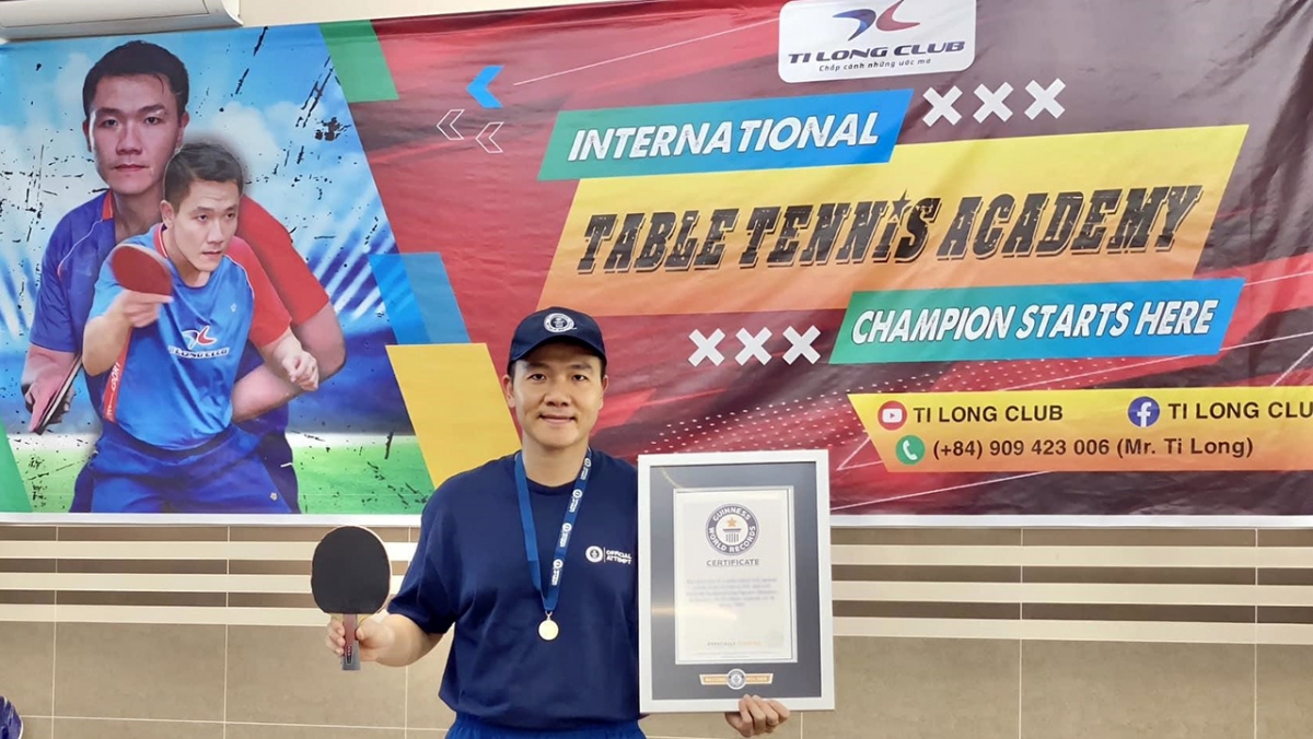 | Nguyễn Hoàng Long - Người đầu tiên trong lịch sử bóng bàn Việt Nam phá kỷ lục Guinness thế giới. |