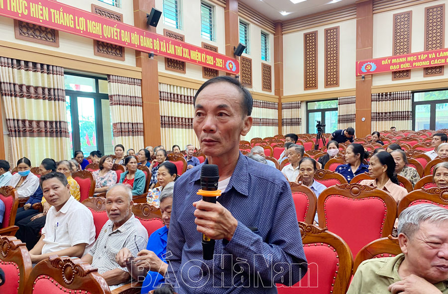 Tại hội nghị, sau khi đại diện Đảng ủy xã báo cáo kết quả công tác xây dựng Đảng, phát triển kinh tế- xã hội (KT-XH), đảm bảo quốc phòng- an ninh thời gian qua, phương hướng, nhiệm vụ, giải pháp trọng tâm 6 tháng cuối năm 2024, đại biểu cán bộ, nhân dân đã phản ánh, đề nghị bí thư đảng ủy, chủ tịch UBND xã làm rõ một số vấn đề liên quan đến đời sống chính trị, KT-XH ở địa phương.