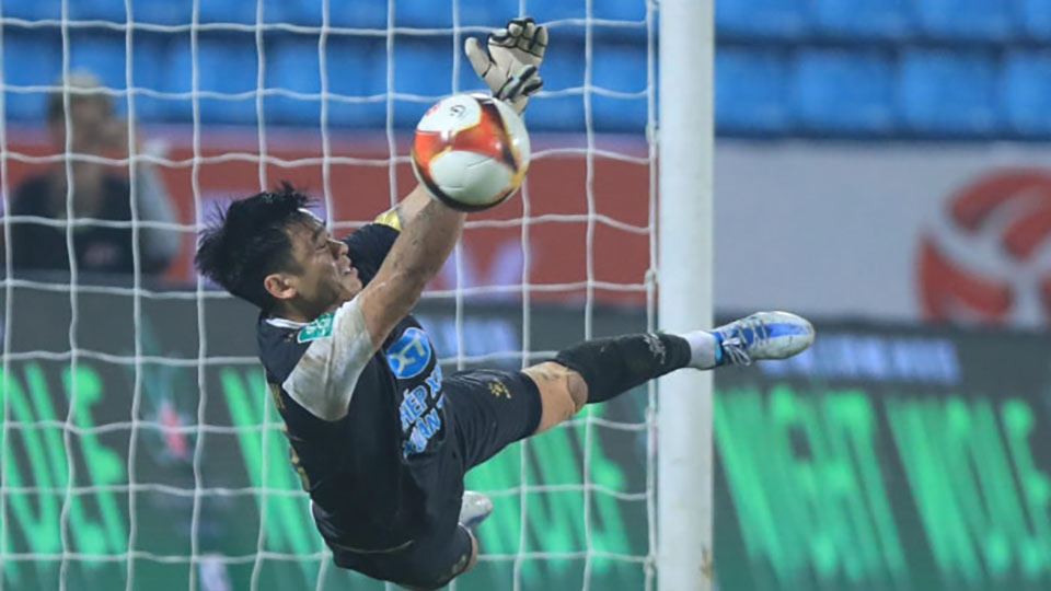 | Thủ môn Trần Nguyên Mạnh đang có phong độ tốt. |