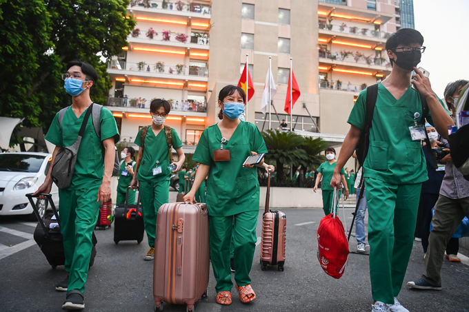 Sinh viên Cao đẳng y tế Bạch Mai lên đường vào TP HCM hỗ trợ chống dịch. Ảnh: Giang Huy