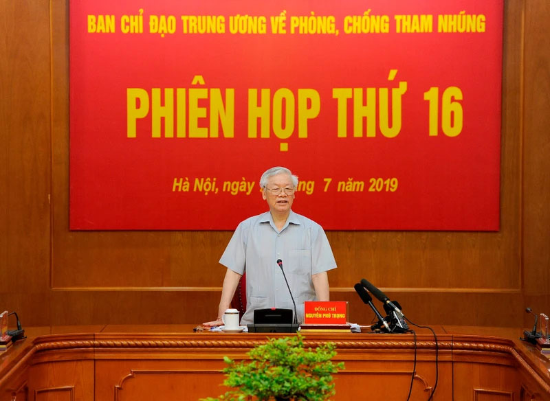 | Tổng Bí thư, Chủ tịch nước Nguyễn Phú Trọng phat biểu tại phiên họp thứ 16, Ban Chỉ đạo Trung ương về phòng chống tham nhũng, ngày 26/7/2019. |