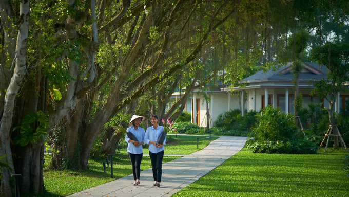 Du lịch bền vững được tạo từ 3 hợp phần hay còn gọi là 3 chân: Thân thiện môi trường, gần gũi về xã hội và văn hóa, có đóng góp kinh tế cho cộng đồng địa phương. Trên ảnh là Azerai Cần Thơ với những gốc cây cổ thụ được bảo vệ trong suốt quá trình xây dựng. Ảnh: ACT.