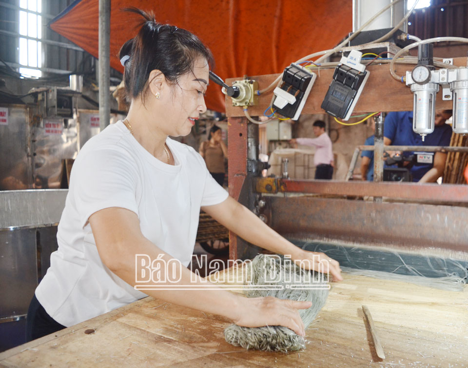 | Được vốn Ngân hàng Chính sách xã hội tiếp sức, gia đình ông Nguyễn Văn Đồng ở xóm Gò, xã Hải Minh (Hải Hậu) đã phát triển sản phẩm miến dong truyền thống đạt tiêu chuẩn OCOP 3 sao. |