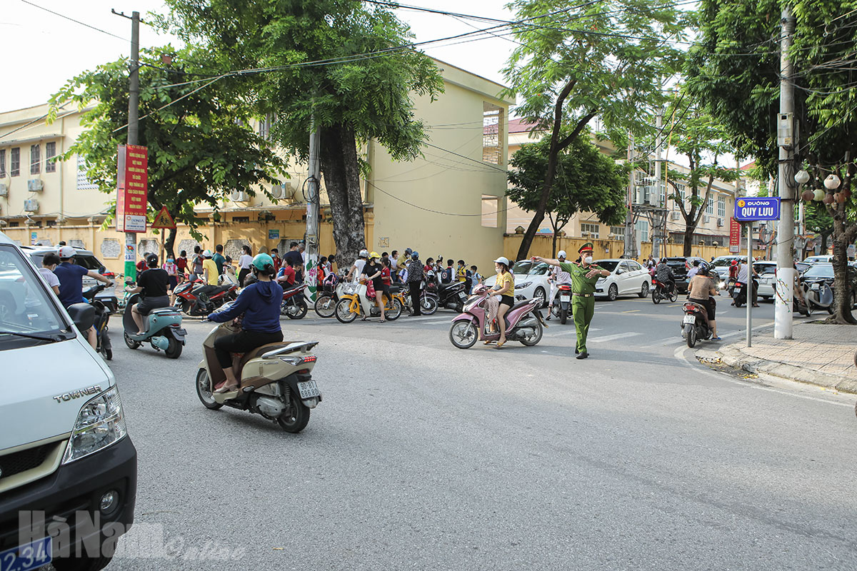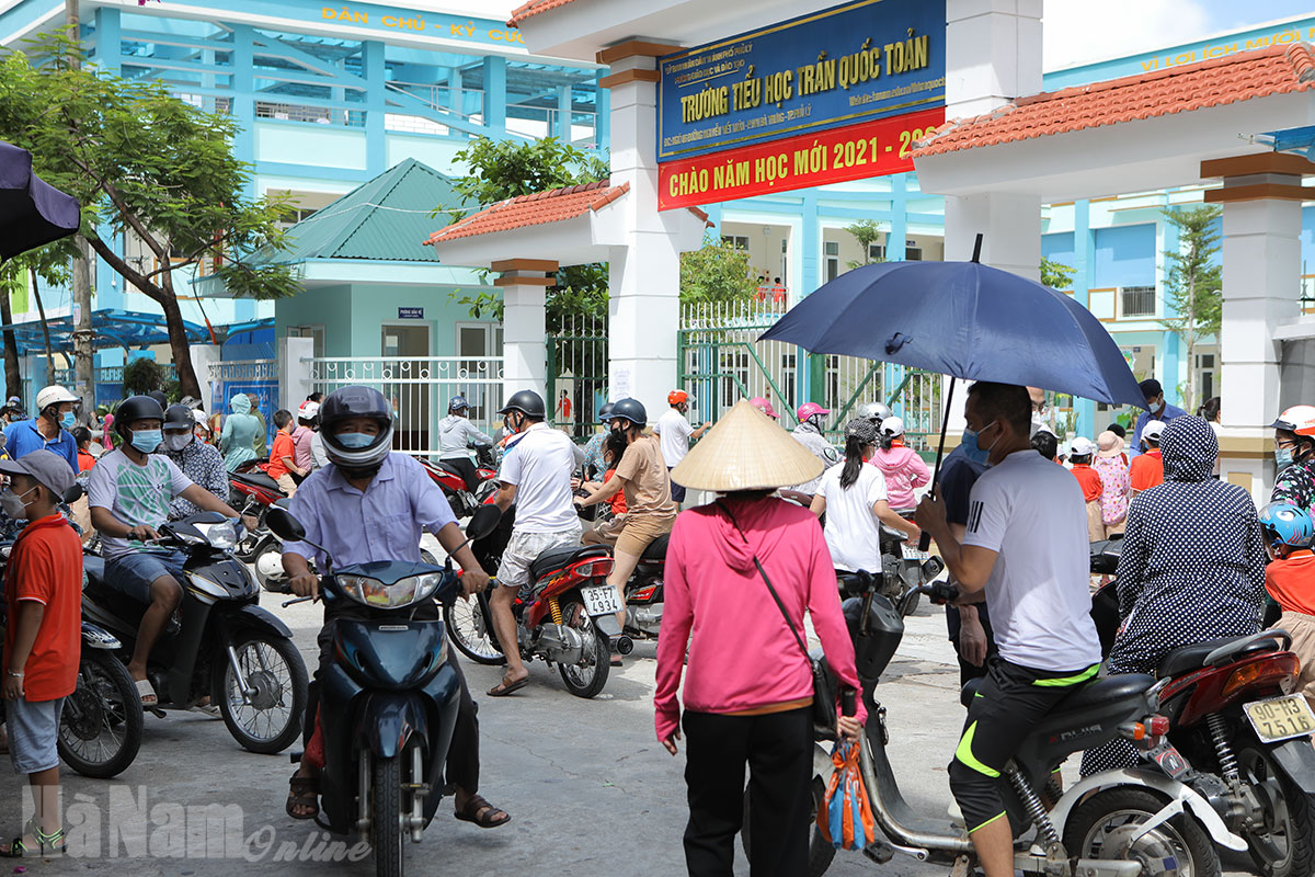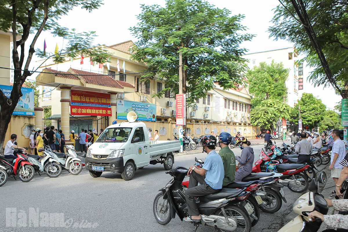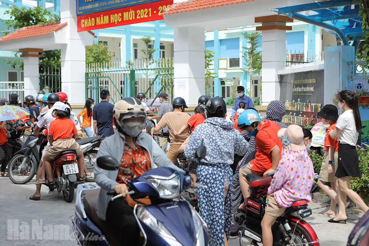 Tại cổng Trường Tiểu học Trần Quốc Toản (phường Hai Bà Trưng, thành phố Phủ Lý), giờ vào học buổi chiều, nhà trường bố trí người trực, đo thân nhiệt trẻ và sát khuẩn tay trước khi vào trường. Tuy nhiên, do cổng trường nằm trong ngõ hẹp, dẫn đến tình trạng ách tắc khu vực cổng trường.