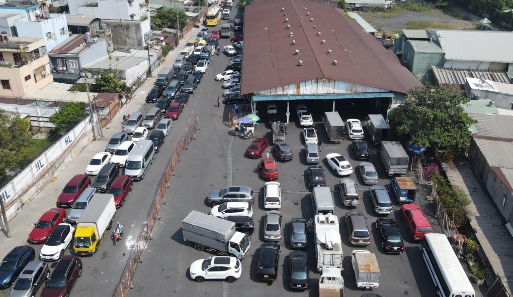 Ôtô xếp hàng chờ đăng kiểm tại trung tâm ở quốc lộ 13, TP Thủ Đức, tháng 1/2023. Ảnh: Đình Văn