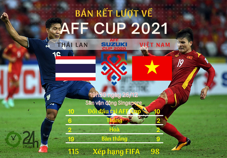 (19h30 ngày 26/12, bán kết lượt về AFF Cup 2021) Thầy trò HLV Park Hang Seo bước vào trận bán kết lượt về AFF Cup 2021 với ĐT Thái Lan bằng tâm thế không còn gì để mất và hy vọng có màn ngược dòng kinh điển.
