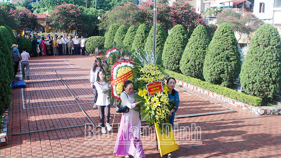 | Câu lạc bộ Cựu chiến binh - Cựu học sinh Trường THPT chuyên Lê Hồng Phong tổ chức lễ dâng hương, đặt vòng hoa viếng, tri ân các Anh hùng Liệt sĩ tại Nghĩa trang Liệt sĩ thành phố Nam Định. Ảnh: Việt Thắng |
