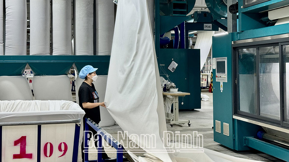 | Sản xuất vải tại Công ty TNHH Top Textiles, Khu công nghiệp Dệt may Rạng Đông (Nghĩa Hưng). |