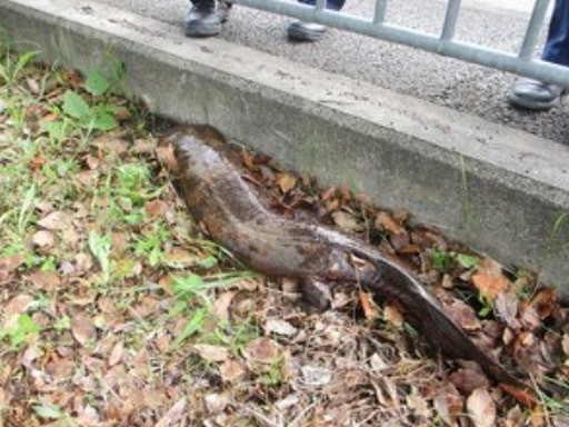 Sinh vật kỳ lạ xuất hiện sau khi khu vực này hứng chịu trận mưa lớn do ảnh hưởng của bão. Nó có chiều dài khoảng 1,3m, đầu bẹt, có 4 chân nhưng đuôi giống loài cá. Nó giống với loài kỳ giông khổng lồ, một sinh vật quý hiếm tại Nhật Bản.