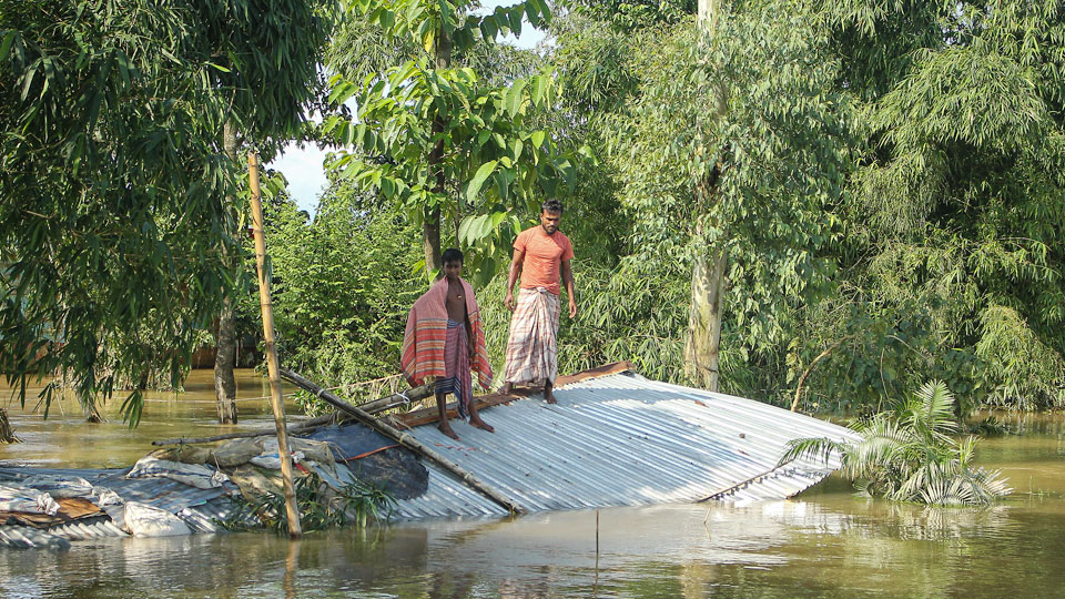 | Ngôi nhà bị sập do lũ lụt tại Sunamganj, Bangladesh, ngày 21-6-2022.
