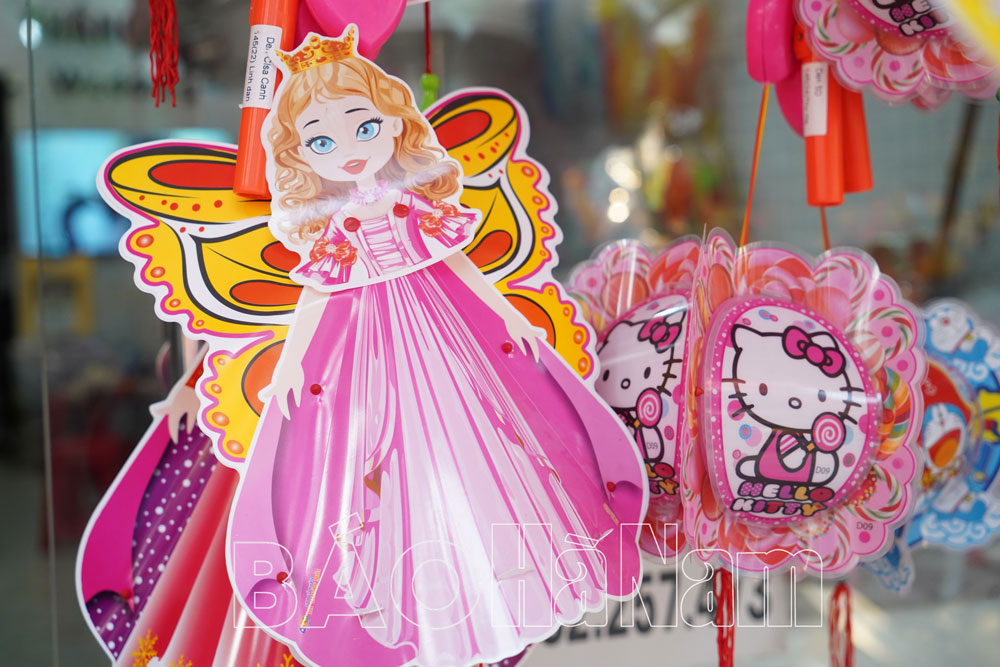 Những ngày này, thị trường đồ chơi trung thu đang bước vào thời điểm sôi động, tấp nập người mua bán, nhất là vào các buổi chiều, tối. Tại TP. Phủ Lý, dọc các tuyến đường như Biên Hòa, Trường Chinh, Trần Hưng Đạo…, dường như được tô thắm thêm bởi sắc màu của đủ loại đồ chơi trung thu bày bán trong các cửa hàng.
